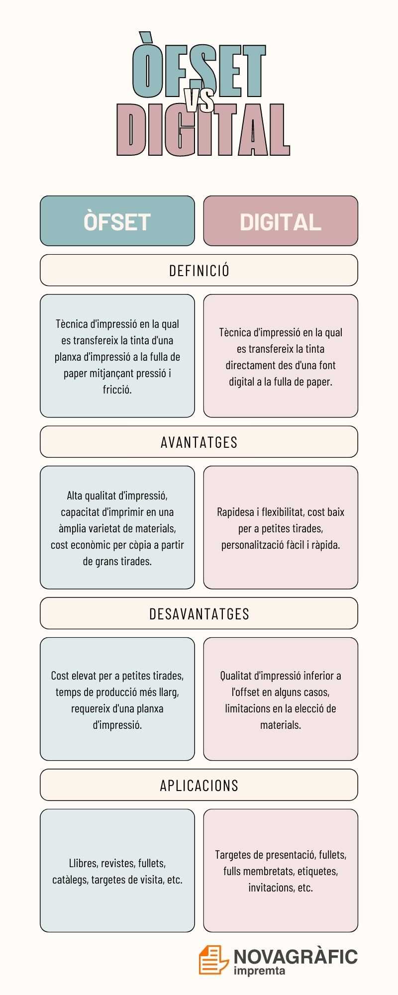 Taula comparativa entre la impremta Òfset i la impremta Digital